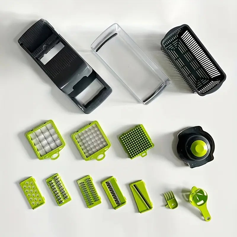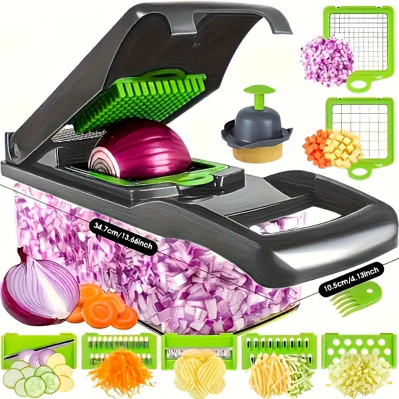 Cortador de verduras 15 en 1, corte uniforme con caja de almacenamiento, trituración, rebanado, rejilla, corte en cubitos, cortador de verduras de cocina multiusos, suministros de cocina